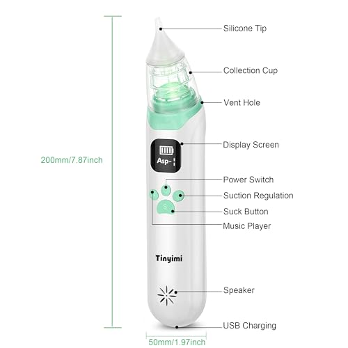 - 【Safety and Hygienic】Tinyimi baby electric nasal aspirator meets the safety inspection standard, which can avoid damaging baby’s delicate nasal mucosa, oral contact and cross infection. 3 reusable nasal suction tips of different sizes is suitable for babies of different ages and conditions.
