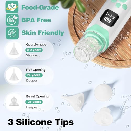 Baby Nasal Aspirator – Safe, Quick, and Hygienic Nose Cleaner with Pause, Music, and Light Soothing Functions – 3 Silicone Tips, Adjustable Suction Level