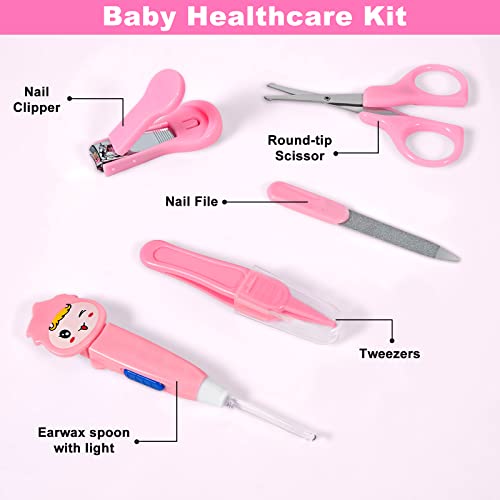 Buoluty Baby Healthcare and Grooming Kit,Safety First Baby Kit,Infant Grooming Kit,Baby Medical Kit for Newborn Boys Girls(14 in 1 Pink)
