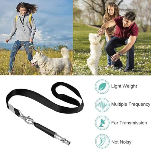 Details: Dog Whistle for Stop Barking, 2 Pack Professional Ultrasonic Dog Whistles Training Recall Dog, Adjustable Silent Dog Whistle Stop Barking Training Control Devices for Neighbors Dog,with Black Lanyard Package Include : 2 x Masterplug Dog Whistle, 2 x Lanyards Features: a. The whistles can be used for other animals, including cats, dog’s birds, etc. b. For dog owners to train, teach, and control their dogs. c. To distract irritating or dangerous dogs. d. Train your dog with different commands and get them to follow your instructions (sit, paw, lay down, up, Heal) How to train your dog with Masterplug dog whistle: Prepare some treats, lead your dog to a lawn, or somewhere quiet. Adjust the pitch and blow the whistle to train your dog, continue testing until your dog responds. Notice your dog’s reaction to each setting until your dog exhibits the strongest reaction. It is best to train 5-6 times per session, reward your dog with a treat If it responds positively. Some tips: “”Don’t move”” ——- Two short sounds, “”Sit down””——— one long and one short, “”Over””——— Two long sounds. For example : When teaching the sit-down action, first play the flute according to the prescribed method, then hold the dog’s buttock with your hand and let him sit down. In this way, repeat the training. Later, when the flute is played, the dog will sit down by himself.