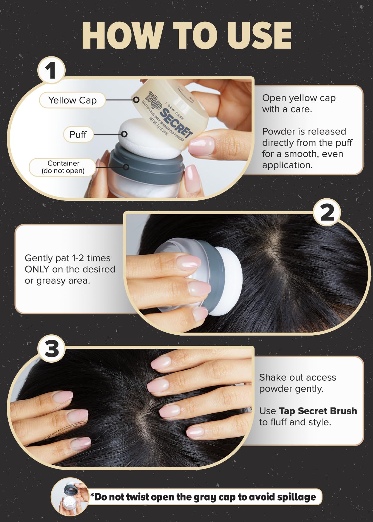 - ✅ ABOUT TAP SECRET: Your Grease-Busting Companion – Introducing Tap Secret, the benzene-free ultra-fine dry shampoo powder in a 7g / 0.24 oz. tub. This hypoallergenic, non-aerosol gem is your guilt-free solution for instantly fresh hair.