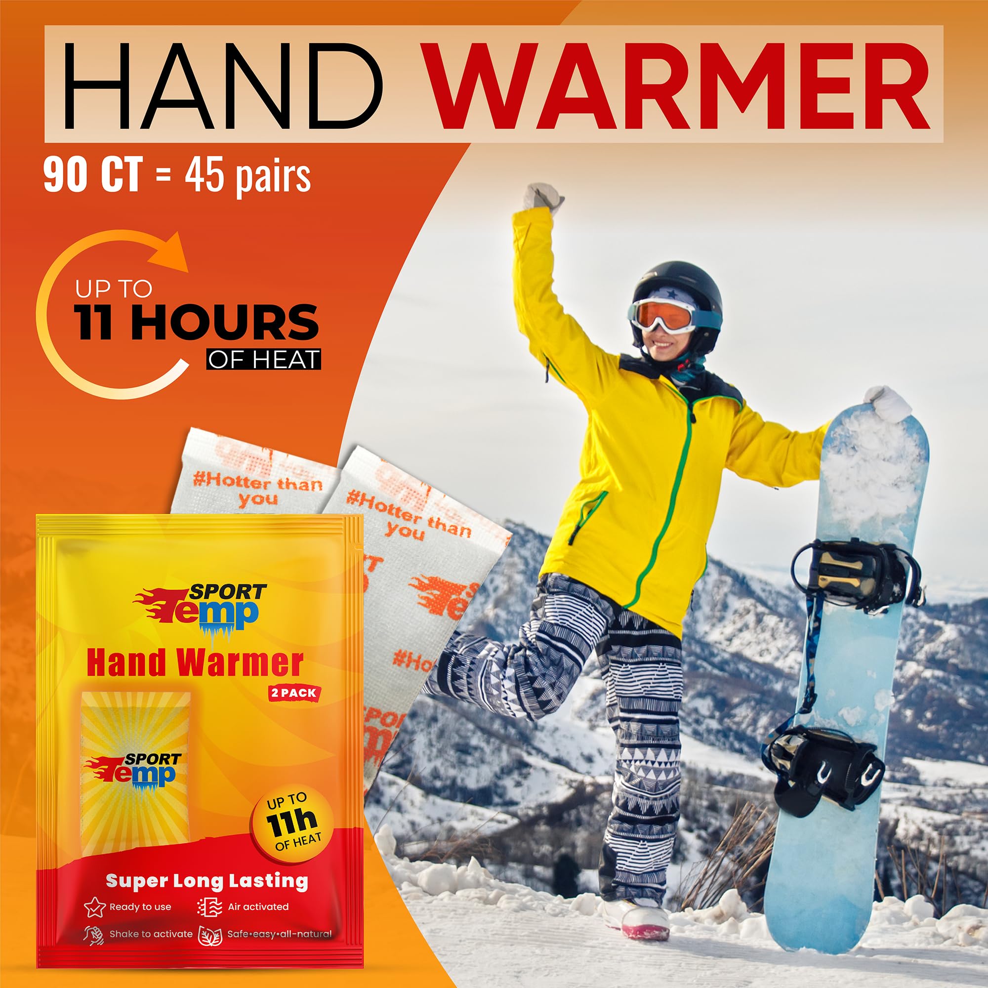 Odorless Hot Hand Warmer (45 Pairs) – Up to 11 Hours of Heat, Super Long Lasting – Easy, All Natural – Air Activated, for Body& Toes – Sport Temp