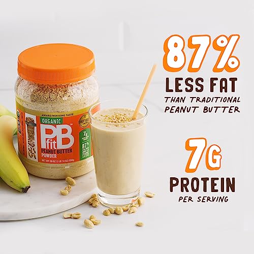 PBfit All-Natural Organic Peanut Butter Powder, Powdered Peanut Spread from Real Roasted Pressed Peanuts, 7g of Protein, 30 Ounce (Pack of 1)