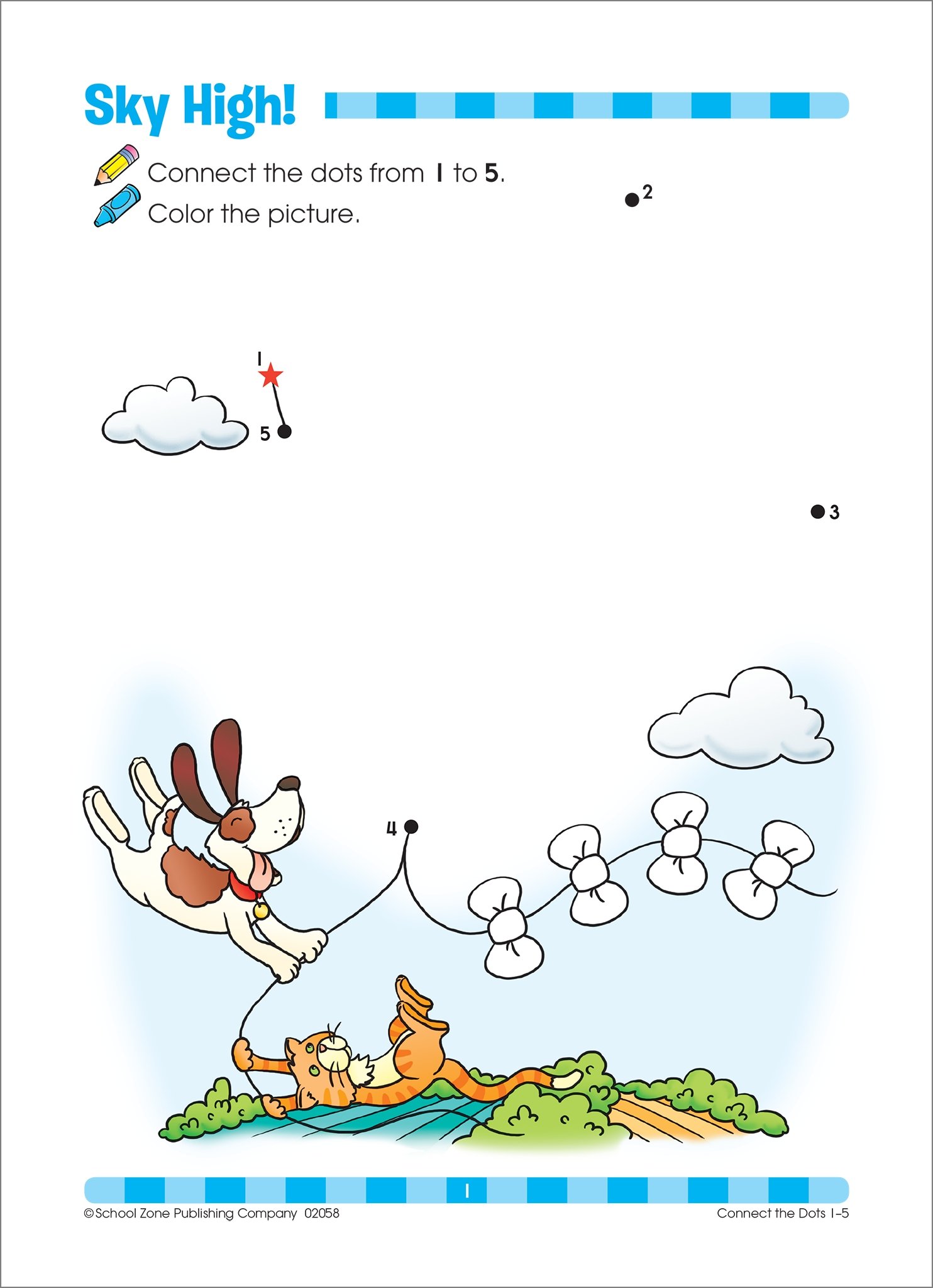 School Zone – Connect the Dots Workbook – 32 Pages, Ages 3 to 5, Preschool, Kindergarten, Dot-to-Dots, Counting, Number Puzzles, Numbers 1-10, Coloring, and More (School Zone Get Ready!™ Book Series)